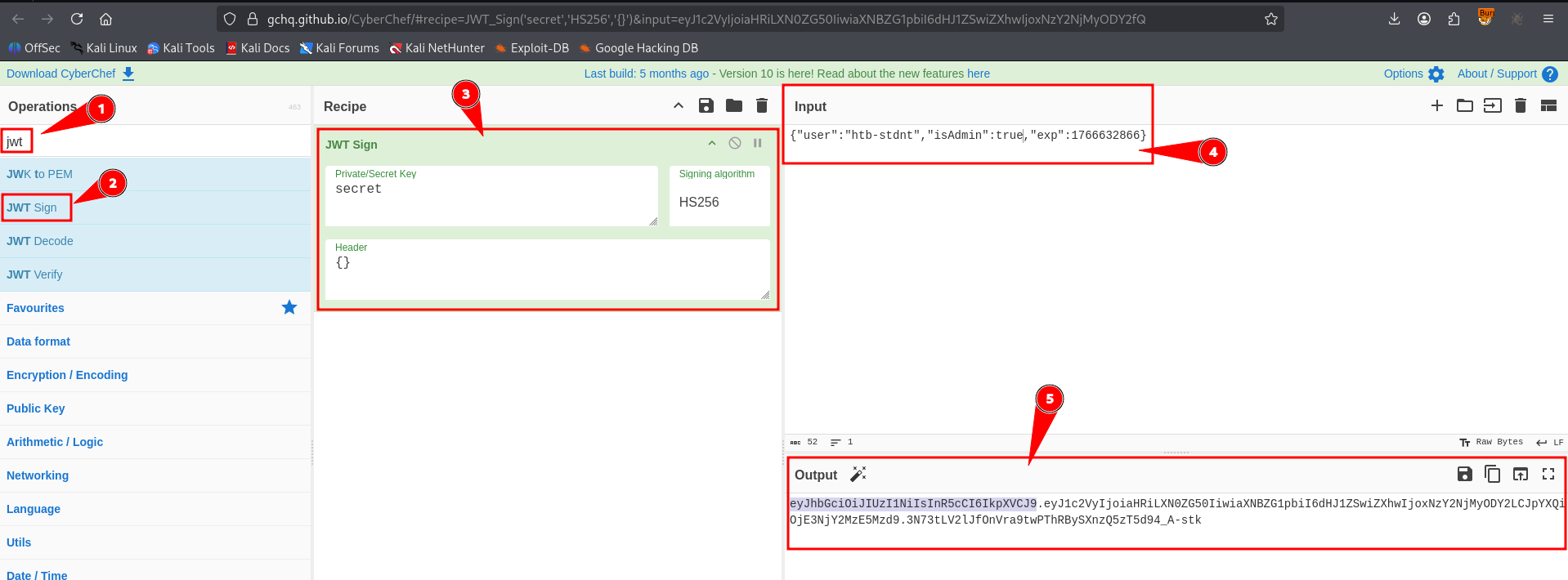 openssl rsa -pubout -in exploit_private.pem -out exploit_public.pemAnd then sign it using CyberChef or use this python script