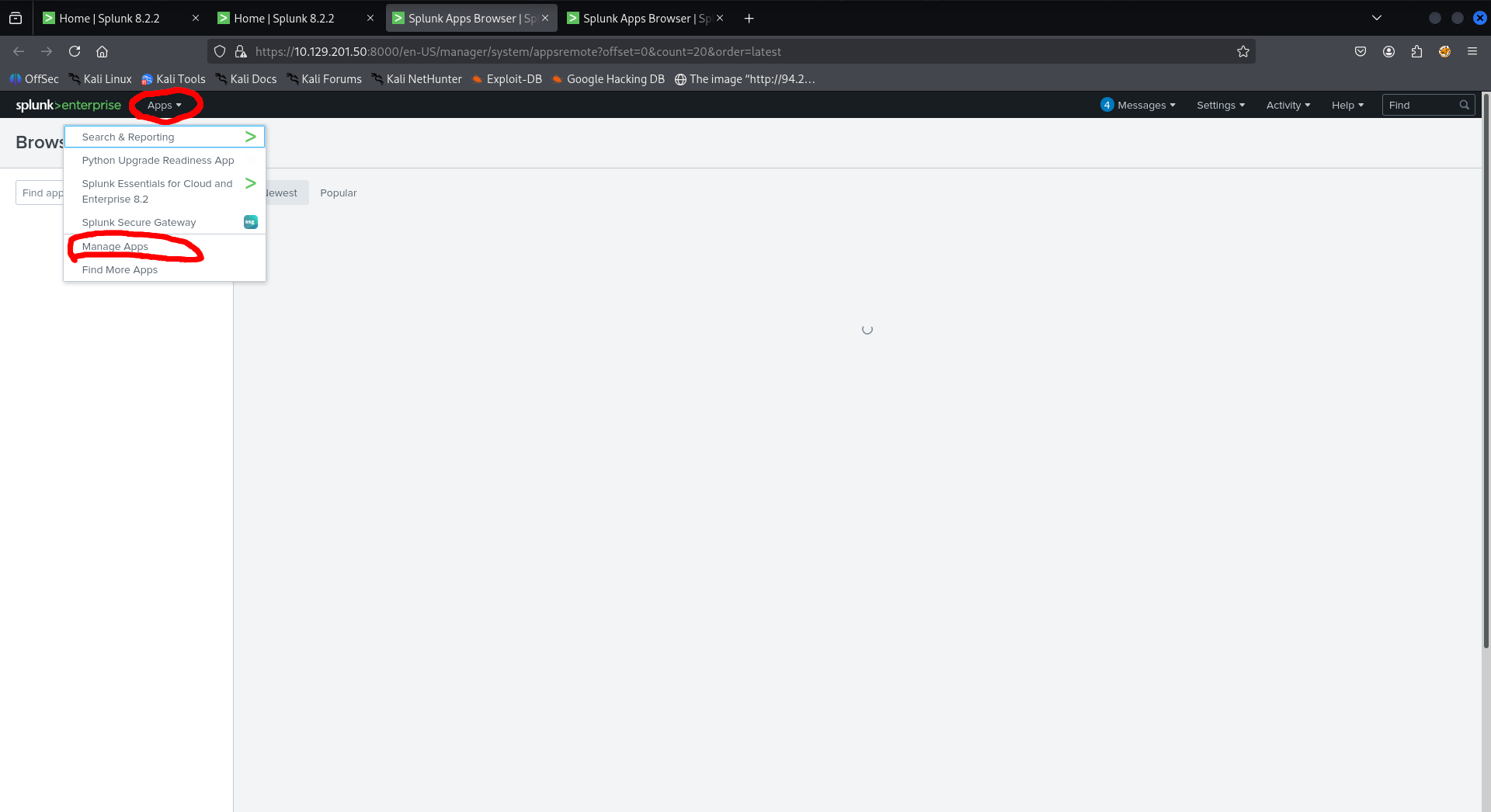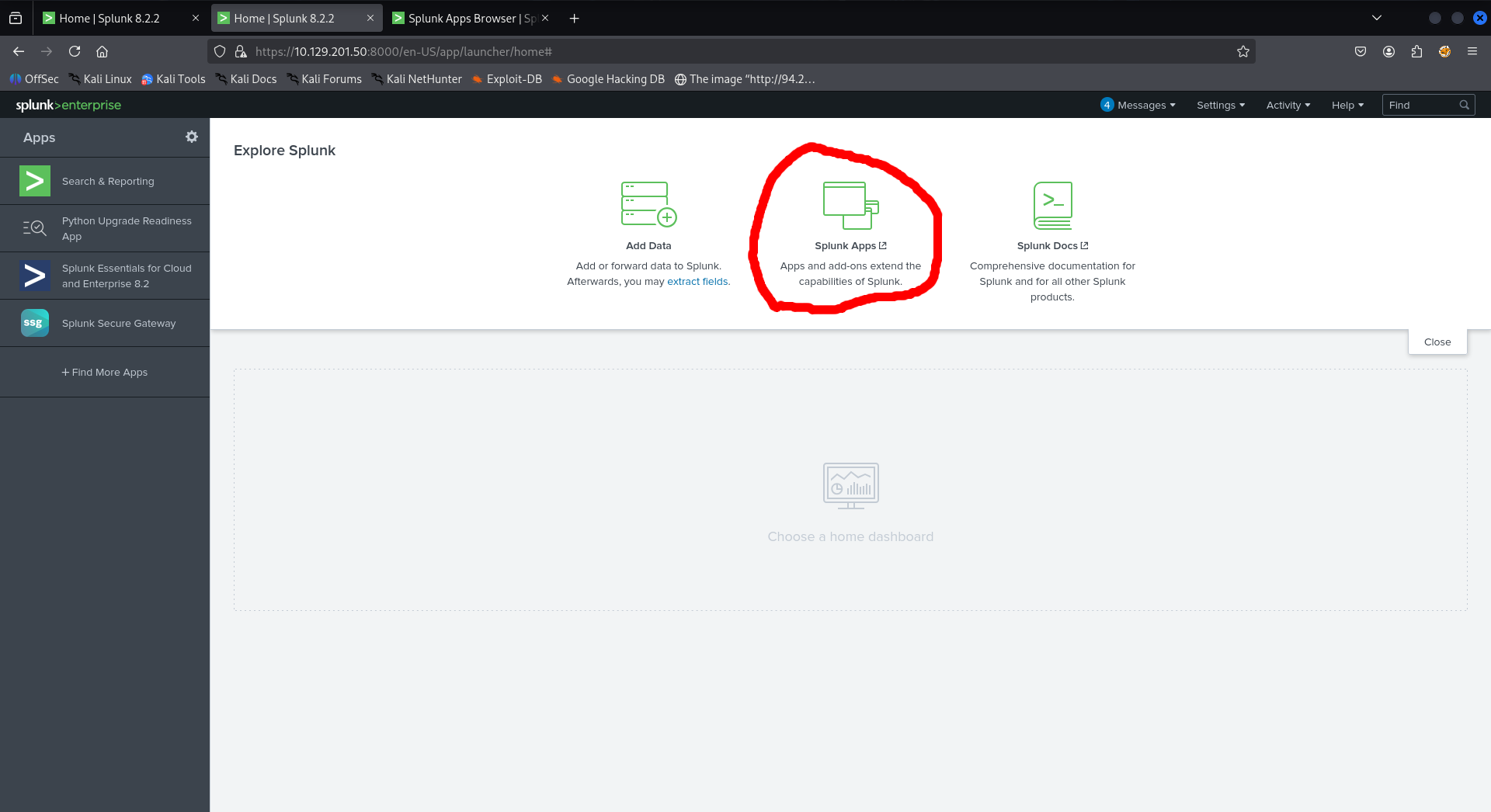 On home page, click on Splunk Apps