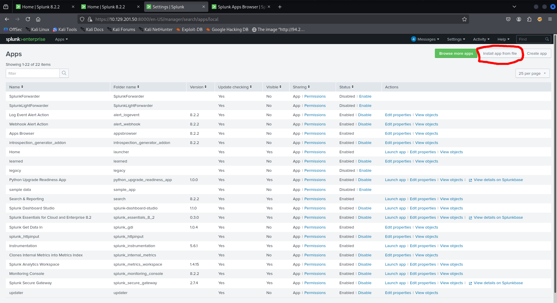 Create a malicious splunk app to upload