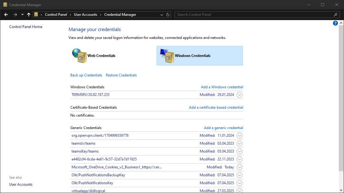 restic.exe -r E:\restic2\ restore 9971e881 --target C:\RestoreWindows credential manager#