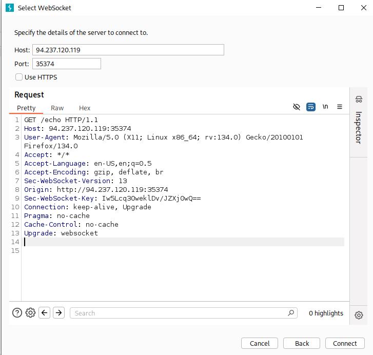 sqlmap -u 'http://localhost:8000/?username=asdasd*'Cross-Site WebSocket Hijacking (CSWH)#