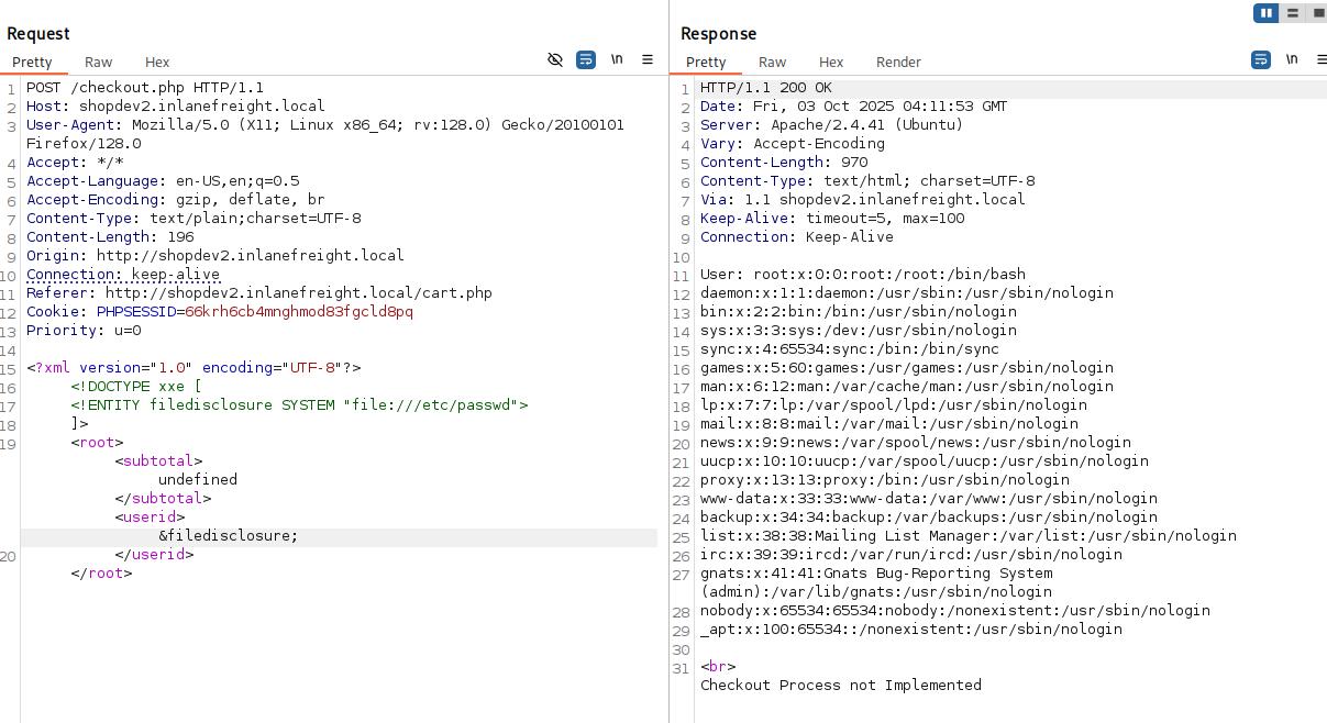 ]>Add it above <root>, then reference filedisclosure where it will output out. In this case, userid is reflected as 1206, so we change it to &filedisclosure;