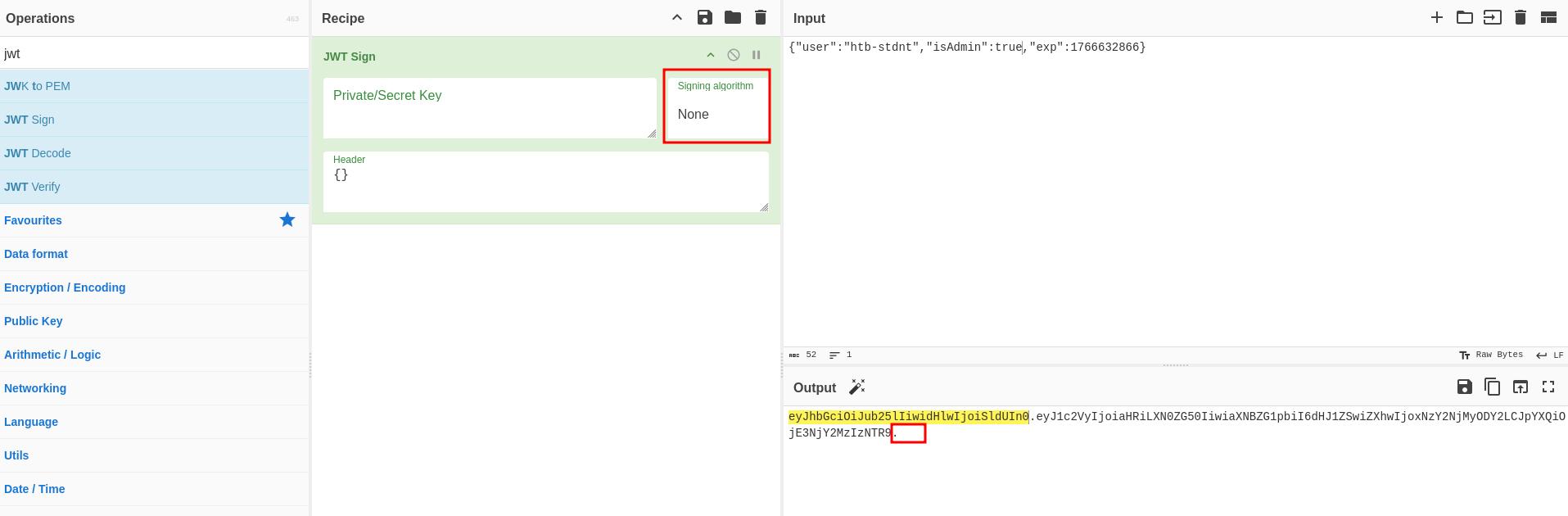 openssl rsa -pubout -in exploit_private.pem -out exploit_public.pemAnd then sign it using CyberChef or use this python script
