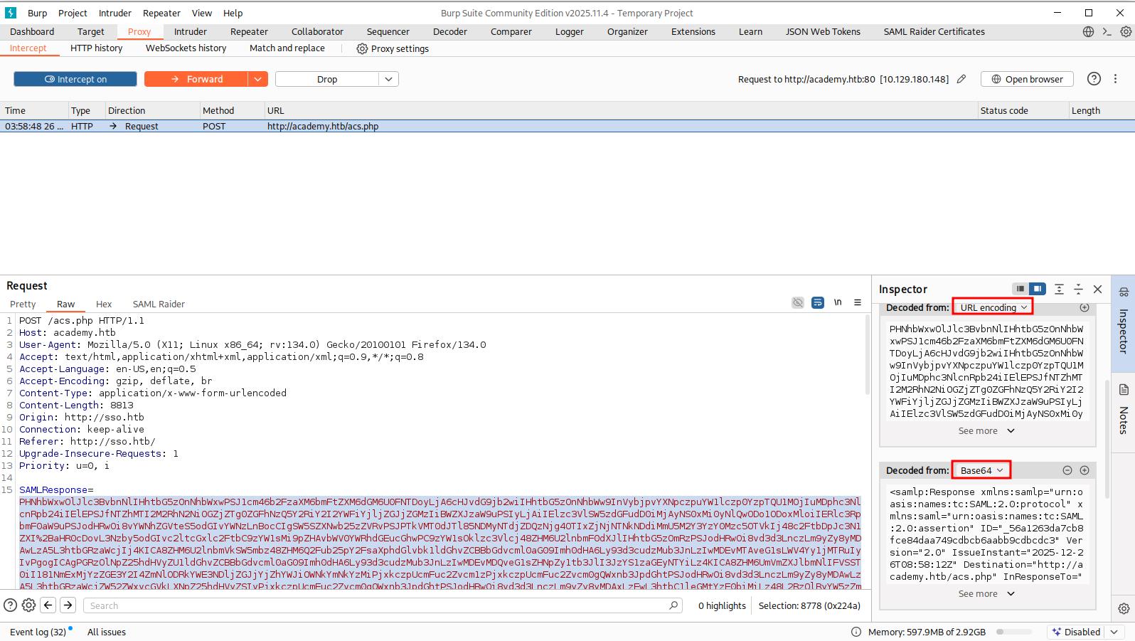 <saml:NameID SPNameQualifier="http://academy.htb/" Format="urn:oasis:names:tc:SAML:2.0:nameid-format:transient">_c379e85b274b1a92c9c70cb0c8ca0c651d4f14d4ba</saml:NameID>
